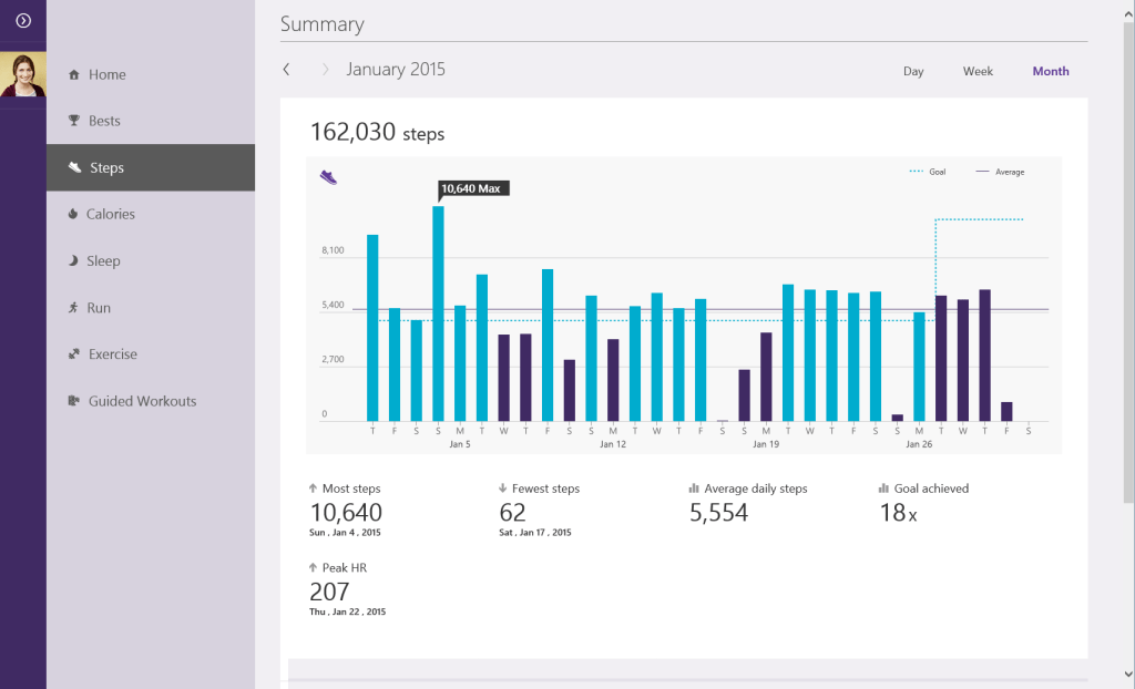 Design of a new dashboard platform for a fitness and activity tracking device and service.