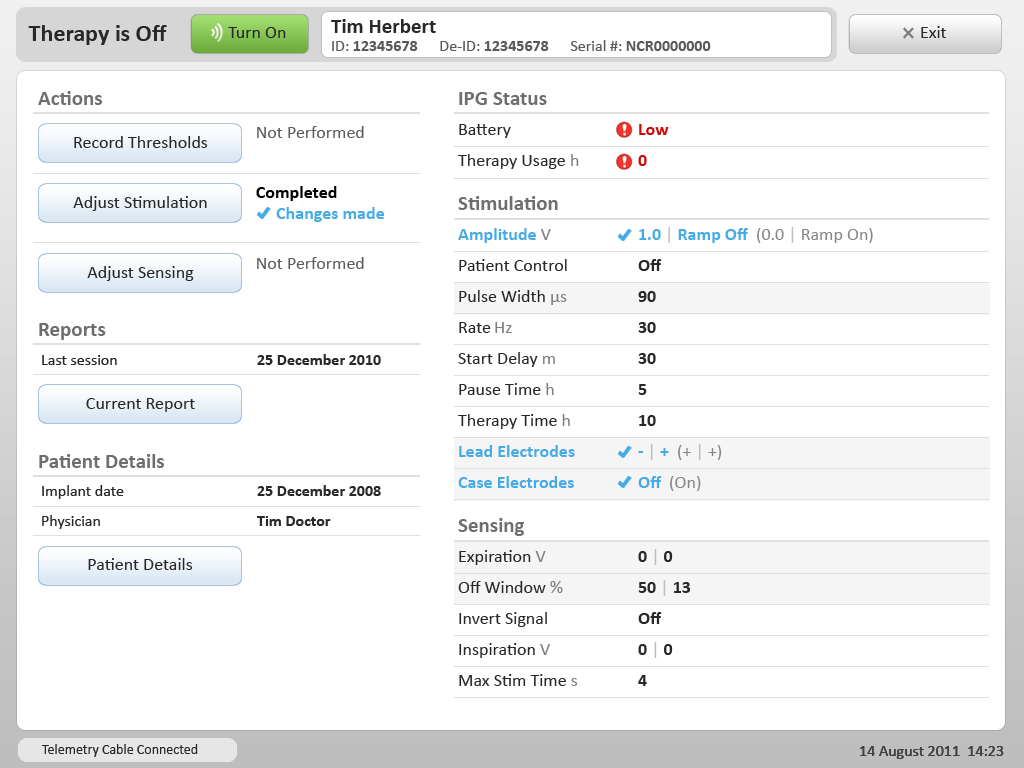 Redesign of an application for setup and monitoring of an implanted therapeutic device for Obstructive Sleep Apnea.