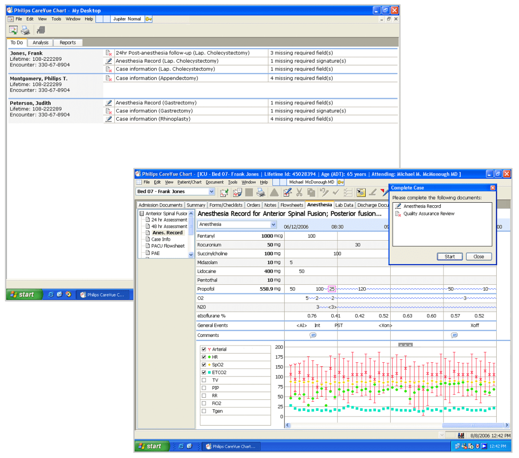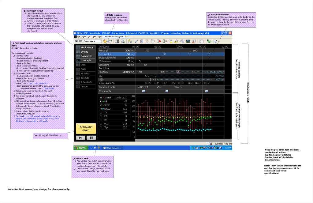 A software platform and user interface that could support the unique workflows of three medical specialties—Intensive Care, OB/GYN, and Anesthesia—yet create consistency across the different functional areas.