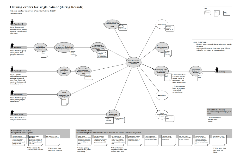 Concept testing was done either in hospitals or online. The team worked with users—physicians, nurses and administrators—in the US, Europe, and Australia to evaluate and validate the concepts. After each session the screens would be updated, and then tested again until the solution was accepted by users.