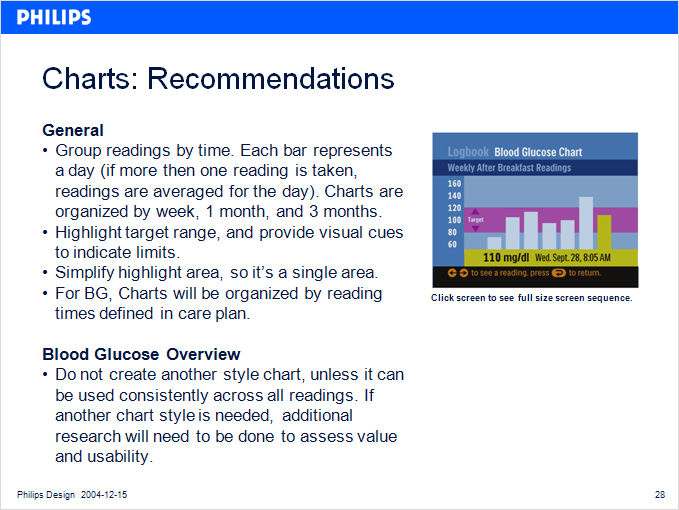 Concept testing was held in a usability lab in Boston, with 11 diabetic patients. Based on test findings, the interaction and visual design was iterated and finalized. Specifications and final assets were created and iterated with the client team.