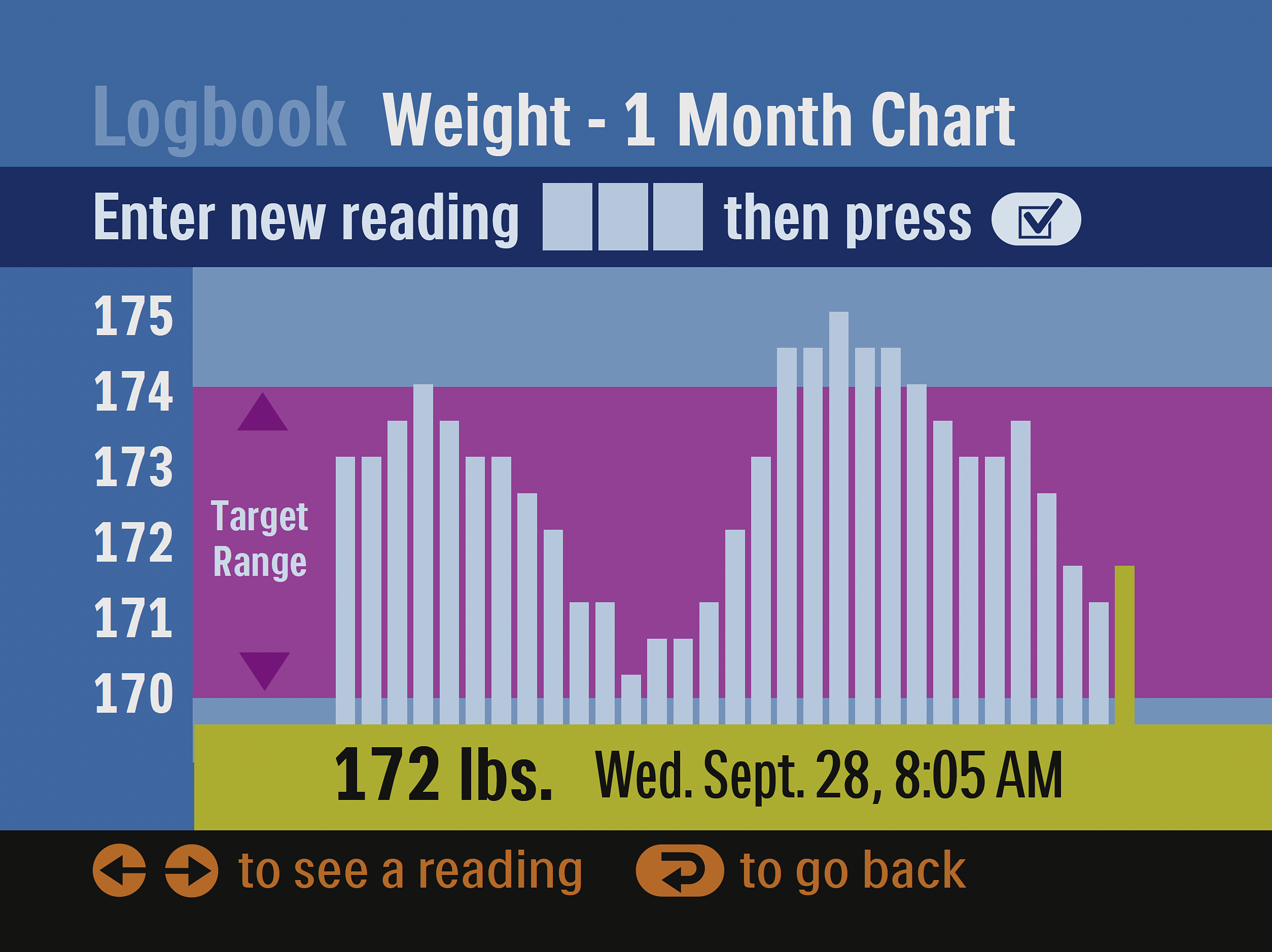 Based on the concept testing findings, the primary design change was to create a logbook for capturing, tracking, and analyzing daily physiological readings. The logbook provided a single location for users to manage and better understand they’re health status. Usability improvements included reducing the color palette, minimizing navigation hierarchy, and providing clear feedback to the patients. Numerous short term motivation strategies were integrated into the user interface to support progressive behavior modification over time.