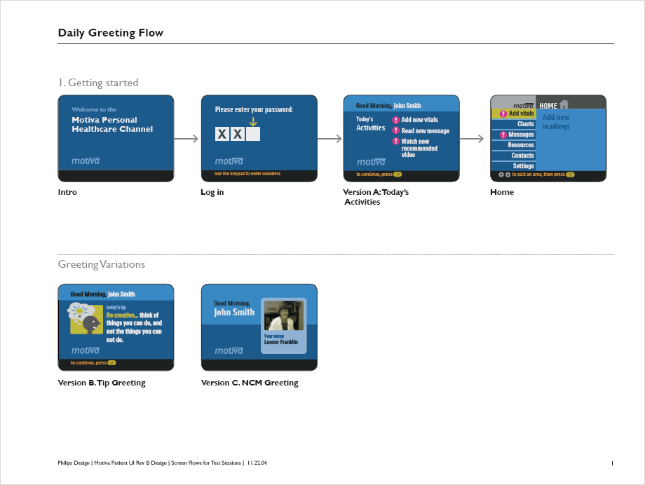 Motiva is an interactive healthcare platform that connects patients with chronic conditions to their healthcare providers, via the home television and a broadband internet connection. The project focused on the design and testing of new motivational concepts for diabetes management and lifestyle, as well as usability improvements for a future Motiva product release.